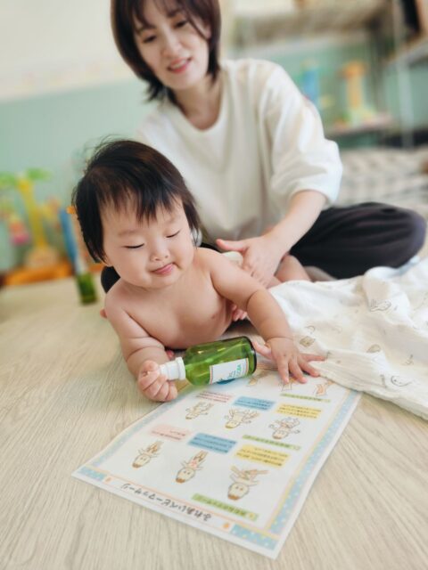 今回のふれあいベビーマッサージ教室ではHくんとМちゃんと笑顔の素敵な2人の癒したっぷりのレッスンでした♡