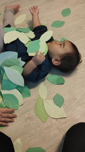 葉っぱ遊びでは、今まで見たことない様なはしゃぎ様のSちゃん♡