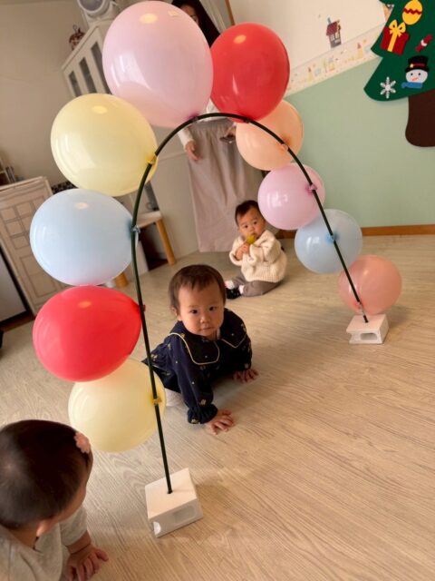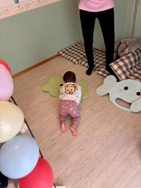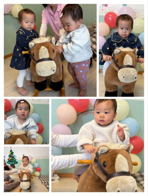 1番月齢の小さなKくんも頑張って乗りました!わんぱく女の子は興味津々です!
