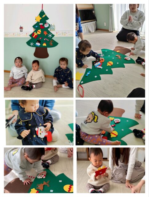 今回の赤ちゃん サイン教室は、12月ということで、みんなでクリスマスツリーを完成させてから レッスンに入りました☆