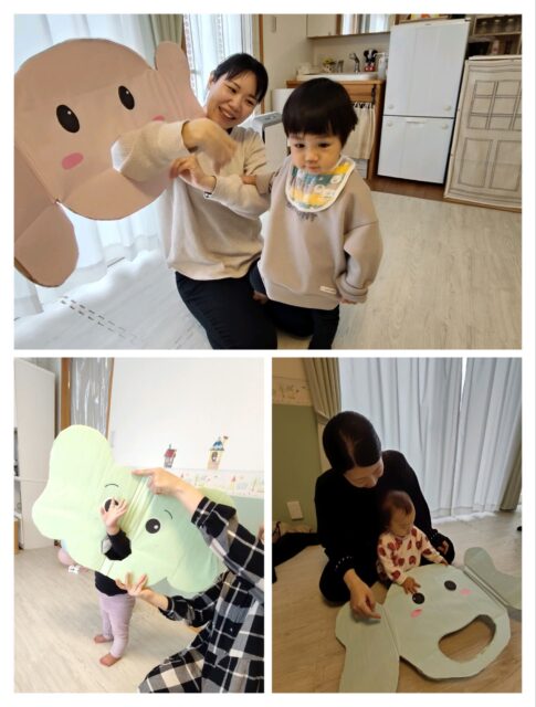 おめめが気になるTちゃんと 上手にぞうさんのサインをするKちゃん♡