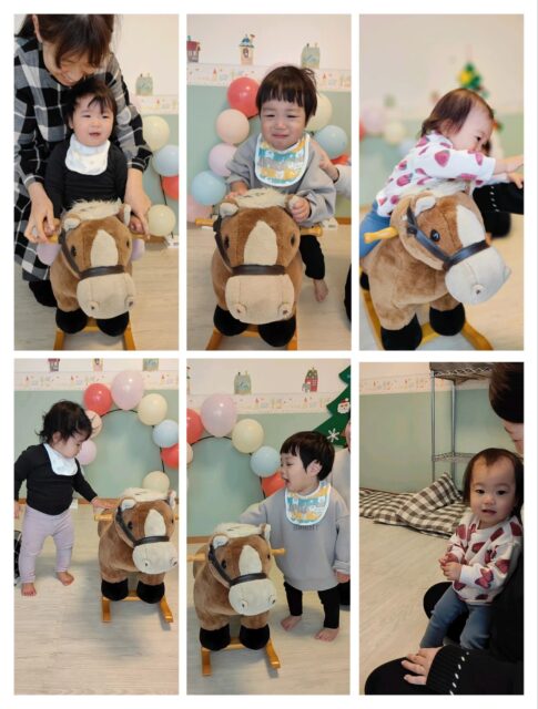 お馬さんに興味津々なのはKちゃんとYくん!よしよしまでは出来るけど乗るのはみんなイヤみたい(^_^;