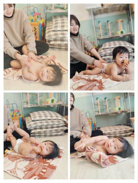 今回のふれあい ベビーマッサージは、みんな下のお子さんの4人でした(*^^*)