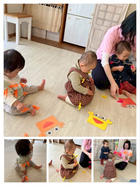 最後はカニさんと洗濯ばさみ遊び♡