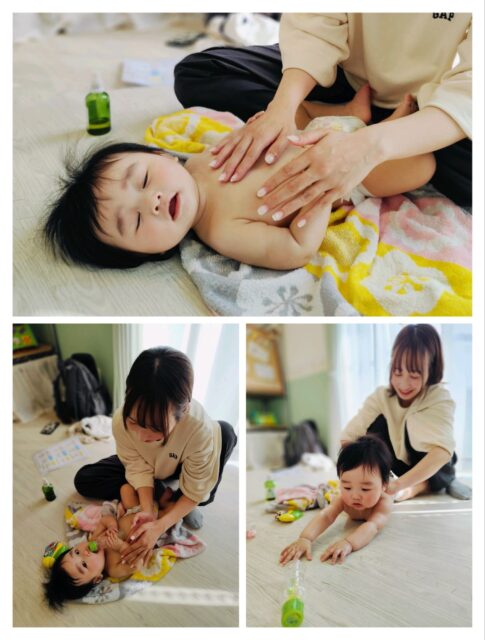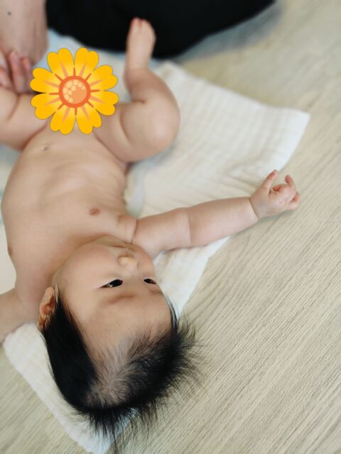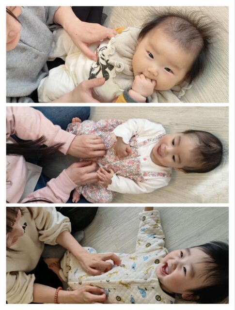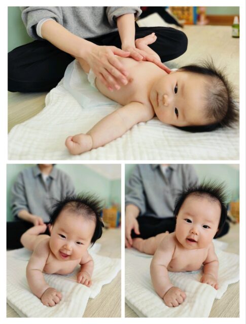 背中のマッサージになると4ヶ月でも伝わってくる嬉しそうな表情のCちゃん♡